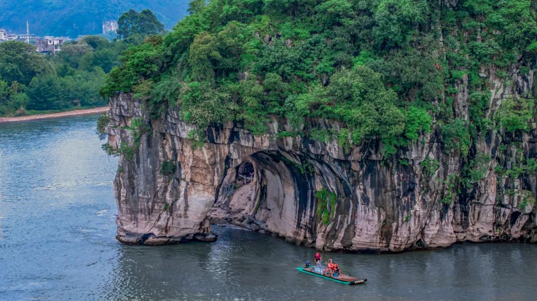 抵达桂林后,我们前往游览最具桂林市山水代表、城市象征城徽——【象鼻山】。其山酷似一头驻足漓江边临流饮水的大象,栩栩如生,引人入胜,山体前部的水月洞,弯如满月,穿透山体,清碧的江水从洞中穿鼻而过,洞影倒映江面,构成“水底有明月,水上明月浮”的奇观。