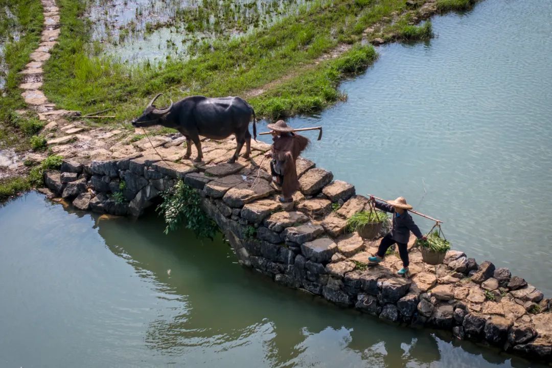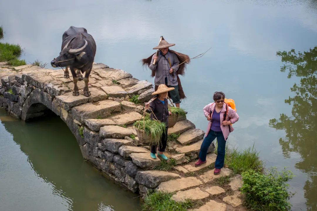 早餐后,前往【田心村状元桥】,田心村状元桥即景斗笠黄牛桥上行,娇颜红袖水下生。禾苗田里如绿海,芳草路边伴紫英。春光耀眼忽冷暖,雨天穿蓑衣,晴天戴草帽,扛着锄头或梨钯,赶着牛走过状元桥。