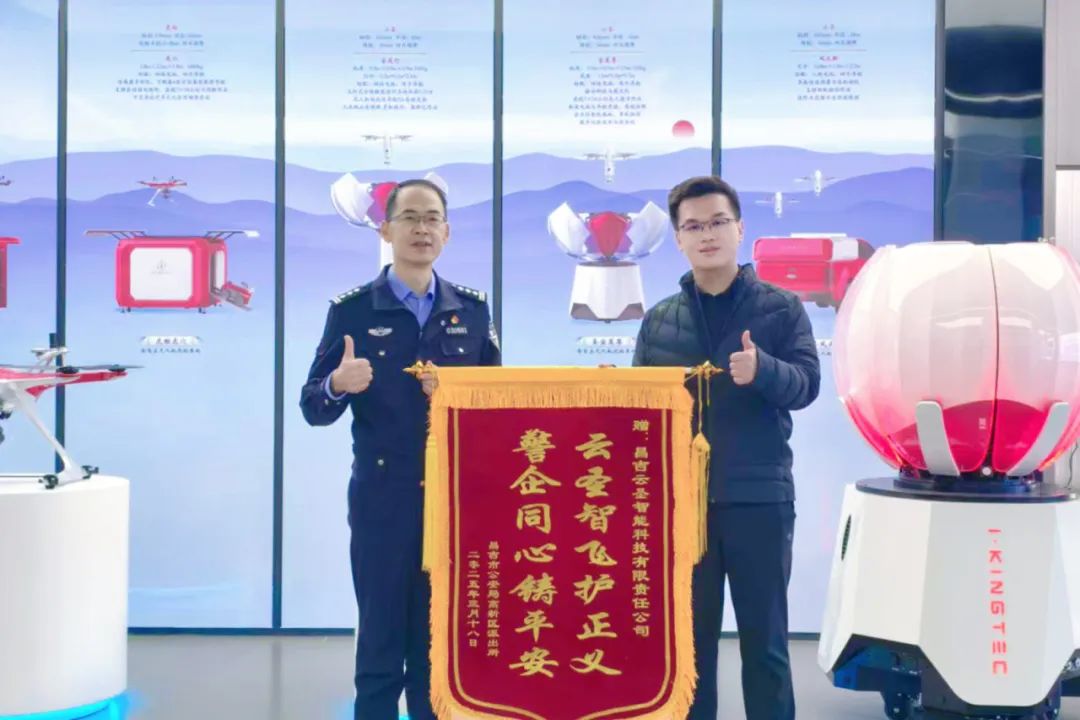 3月27日,新疆昌吉公安局高新区派出所向云圣智能赠送锦旗,锦旗上书“云圣智飞护正义,警企同心铸平安”,表彰云圣智能全自主无人机巡检系统在平安昌吉建设中的卓越贡献。