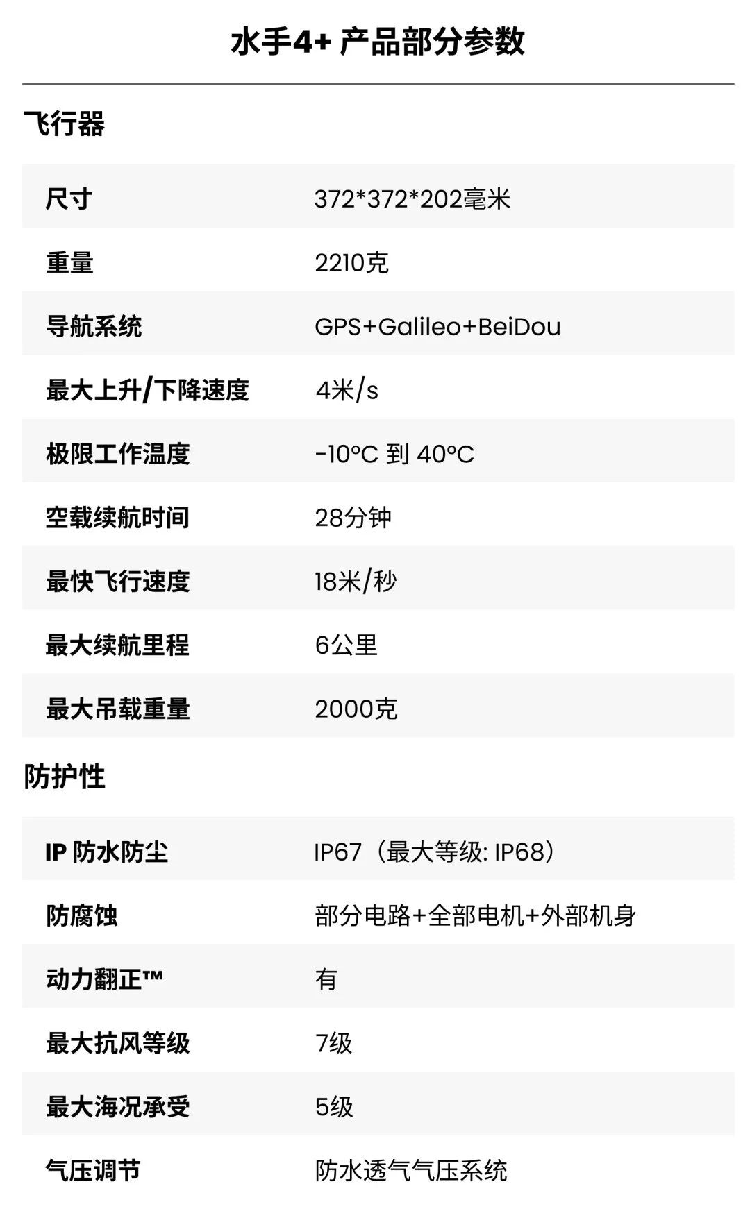 水手4+产品部分参数