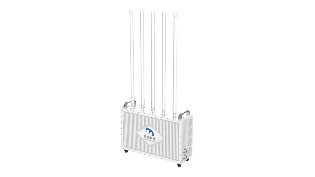 “驱鹰”干扰压制设备采用多种干扰技术以及智能高效压制干扰的方式,在范围内对无人机的图传、遥控和导航信号的接收和处理进行阻断干扰,实现强制返航、迫降、驱离等反制效果,快速有效处置目标无人机。设备根据雷达、无线电等设备的引导,发射信号,达到干扰目标的效果。