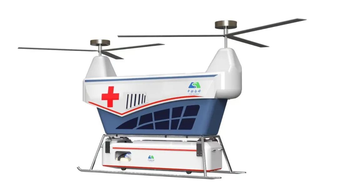 该“急救转运无人机”,具有“呼吸、液体输注、体征监护、除颤、超声、复温、供氧和感控,以及环境监测和远程视频监控”等多种医学救治功能;具备“在潮湿、盐雾、颠簸和6级海况的海上,以及在-25°C至46°C、海拔5000米的高原,能有效对海上和高原遇险受灾人员,进行精准搜救、现场急救、伤病员快速转运后送、救援物资及时投放”等救治能力;拥有航线跟踪、悬停等自主飞行功能,也可通过地面站遥控飞行,起飞自重为600公斤、载重为300公斤,能广泛应用于“战时、传染病防控、极端自然灾害和突发事件”等多场景危重症伤病员的救治及后送。通过与海上和高原应急医学救援智能管理系统有效兼容,构建“现场、近处和后送”救治与保障的“两条链”,无缝衔接了“搜和救”两个领域的“一条线”。