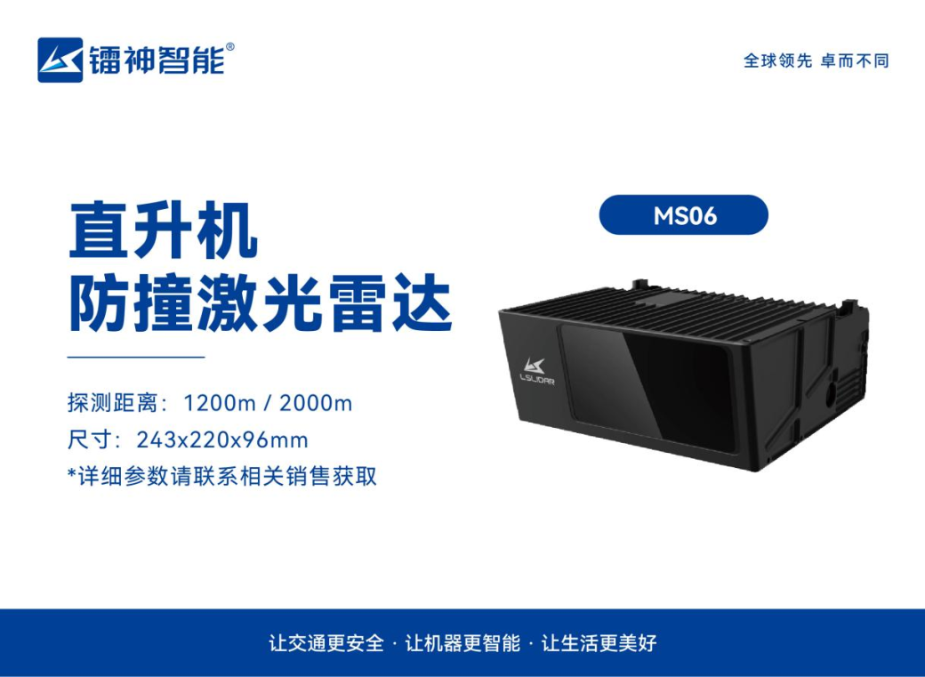 • 前向搭载MS06超远距防撞激光雷达,探测距离1200米,最远可定制2000米,可远距离识别400米以外的高压电线、同航线飞行器、无人机、飞鸟等入侵障碍物。