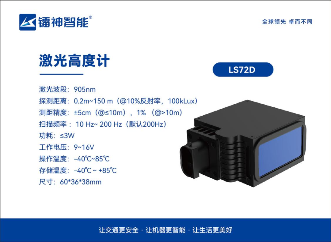 • 底部搭载航空级激光高度计LS72D/LS72B,用于实时监测离地高度,辅助安全着陆。