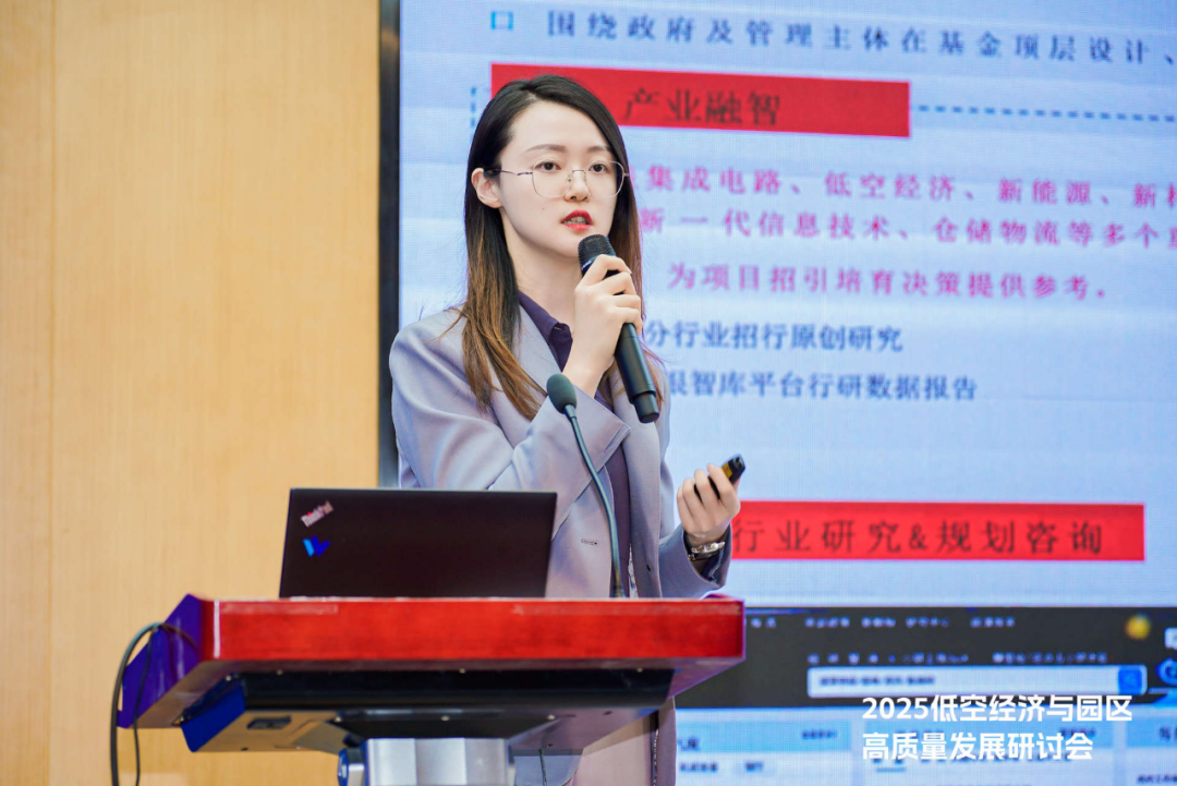 上海中创产业创新研究院高级副院长丁国杰在主题分享中,深入分析了低空经济的行业趋势和政策导向,结合国家政策解读了低空经济对产业园区发展的机遇与挑战,为与会者提供了宏观层面的指导和参考,帮助大家更好地把握政策方向,推动低空经济与园区发展的深度融合。