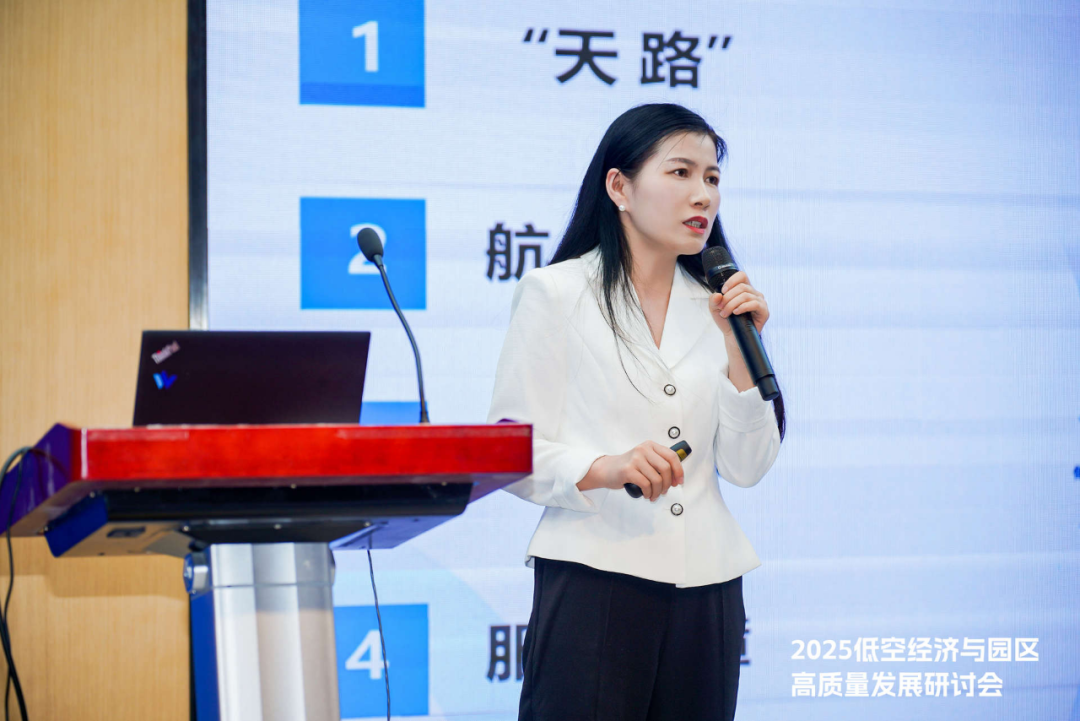 华东无人机基地、上海浦东软件园·三林园以及苏州新盛里低空经济产业园等单位,分别分享了各自在低空经济领域的实践经验。上海新金山世纪航空发展有限公司副总经理徐金梅介绍了上海(金山)低空经济特色产业园暨华东无人机基地新场址的规划;上海浦东软件园·三林园副总经理朱冬梅分享了园区在“研发+试飞”模式上的探索;苏州工业园区低空经济产业发展有限公司执行董事刘海霞则从新盛里低空经济产业园的实践出发,探讨了低空经济特色产业集群的构建路径。这些案例为其他园区提供了宝贵的借鉴和启示,有助于推动低空经济在更多园区的落地和发展。