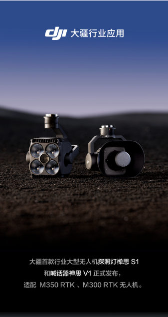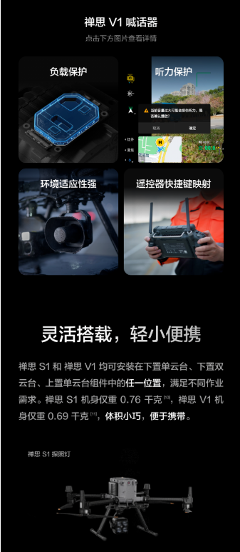 大疆发布禅思 S1 探照灯和禅思 V1 喊话器