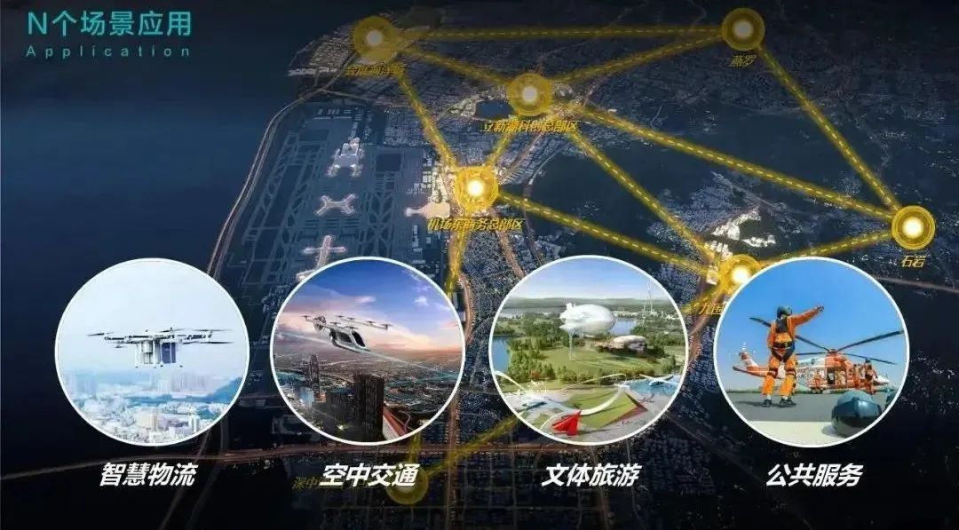 构建低空经济生态圈,结合当地环境和消费者需求,开通无人机物流航线、VTOL载人交通出行,景区空中旅游等一体化运营。