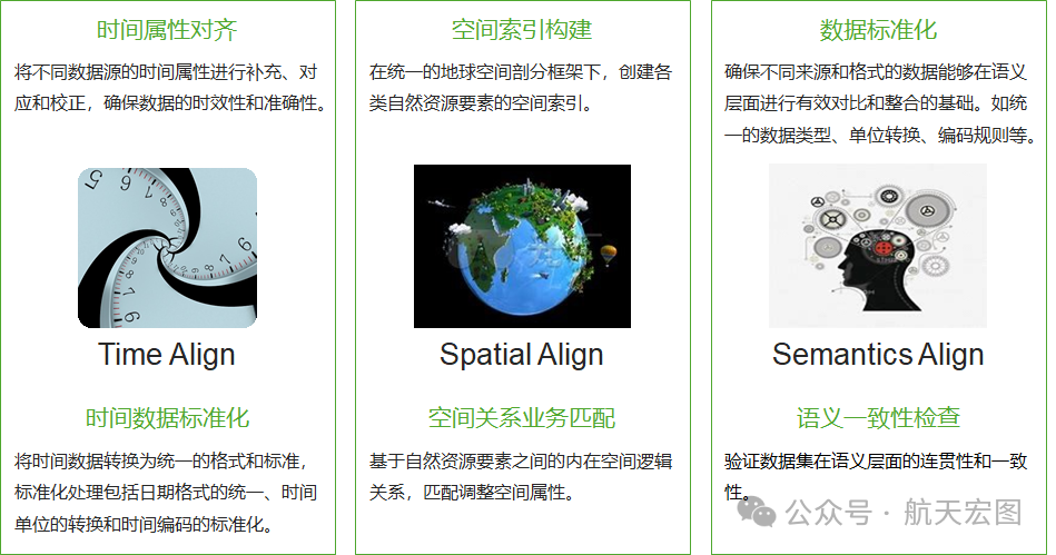 在自然资源“全要素、全周期”管理愿景下,航天宏图创新构建全要素全维度信息融合底图体系,以空间基准对齐、语义对齐、时间对齐的三阶对齐方式重塑自然资源调查监测一张融合底图: