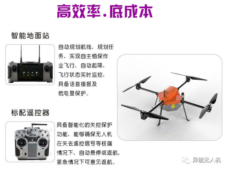 A6植保机 标准配置:飞行平台、动力系统、操作系统、智能喷洒系统;