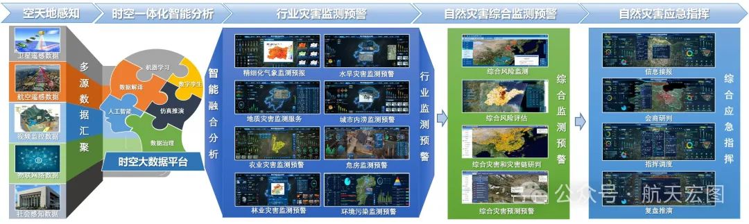 航天宏图自然灾害综合监测预警指挥系统针对城市各类自然灾害防灾减灾救灾需求,运用空天地监测感知、大数据、人工智能、数字孪生等技术,建设数据融合和智能分析、行业灾害监测预警、自然灾害综合监测预警和自然灾害应急指挥等示范应用,实现对水旱、城市内涝、森林火灾、农业灾害、地震、地质灾害等自然灾害的监测预警,多灾害和灾害链的综合风险分析、风险评估、预警发布和应急指挥等。推动从源头上防范自然灾害风险,提升城市自然灾害风险早期识别、预报预警、应急指挥辅助决策能力,真正把自然灾害化解在萌芽之时、成灾之前。