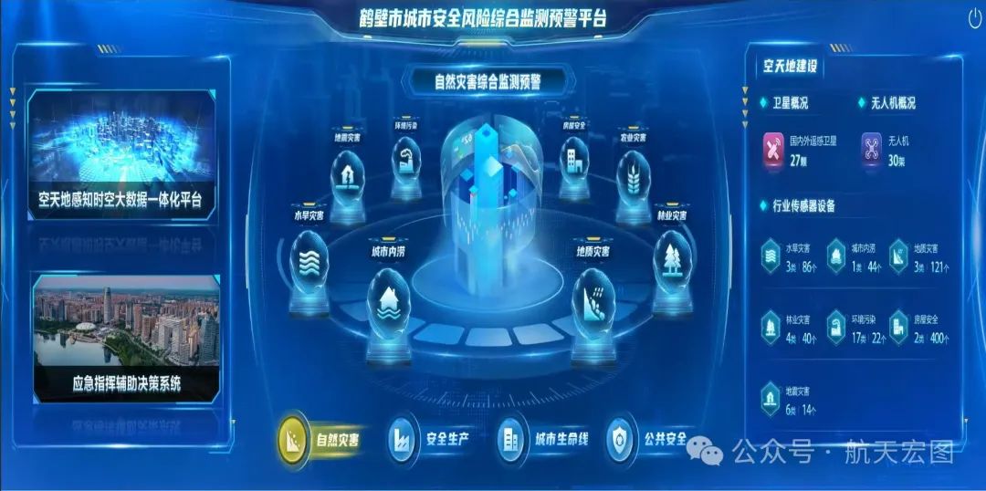 基于空天地自然灾害综合监测感知网解决城市各类自然灾害监测能力不足的问题。通过统一时空大数据平台打通气象、水利、城管、自然资源、林业等行业的数据壁垒,有效解决应急情况下实时数据共享和数据治理问题。建立态势感知、综合研判和辅助分析,充分应用灾害、事故模型和情景推演,加强大数据关联分析及结果运用,为风险监测预警、应急指挥决策、应急救援处理等提供数据支撑。充分利用数据分析能力,利用各类灾害模型算法作为支撑,为决策优化提供有力支撑。打破以往应急指挥各自为政、缺乏协同联动等弊端,理顺应急体制机制,实现灾害救援应急指挥一体化。解决此生衍生灾害和灾害链预警不足问题,加强灾害预警和灾情信息发布能力。为城市自然灾害综合监测预警和应急指挥保驾护航。