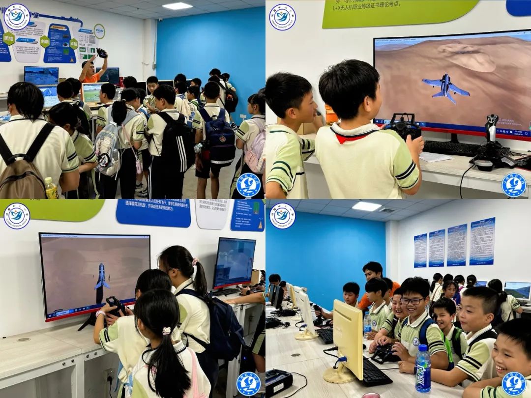 在模拟飞行区,同学们瞬间 化身为飞机驾驶员。转动操纵杆、调整襟翼、推动油门…… 飞机呼啸着冲向蓝天!“我在云层上面飞!”“快看,下面的房子像积木一样小!” 逼真的画面和沉浸式体验,让大家过足了 “机长瘾”,连围观的老师都忍不住感叹:“太酷了,我也想试试!”
