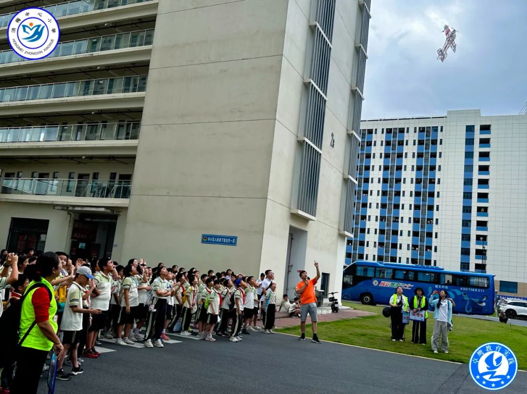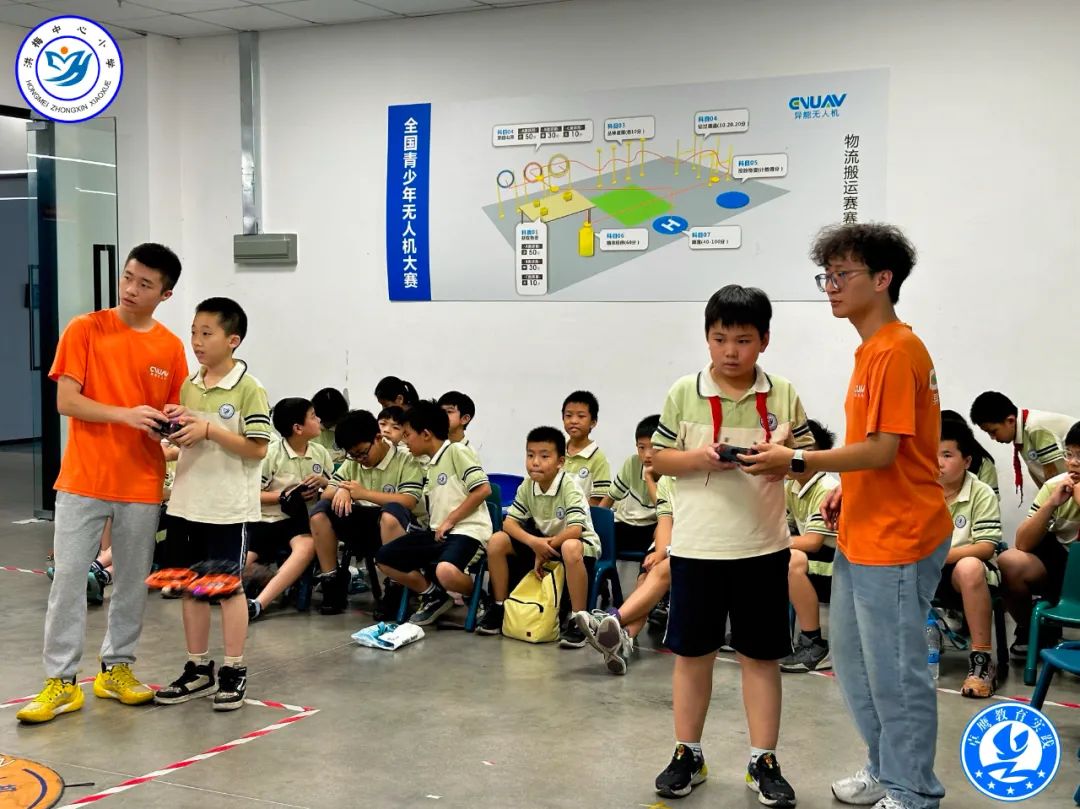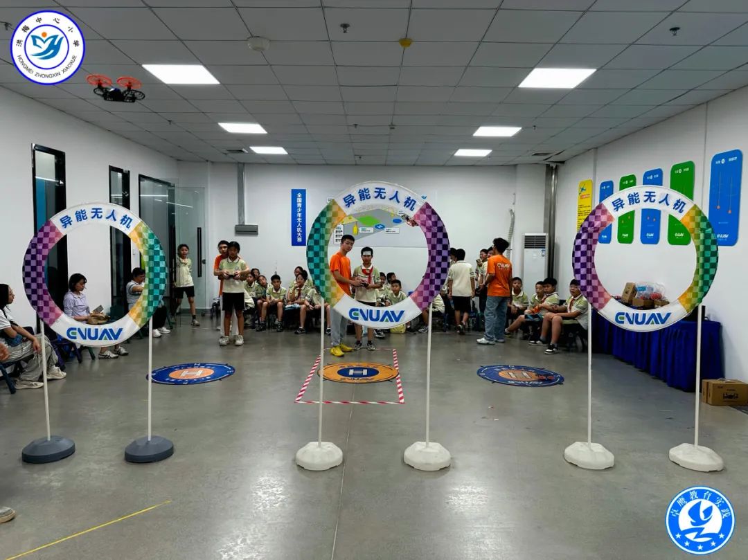 活动最后一个项目,无人机飞行表演 ,拖着彩带腾空而起!它们时而像花朵绽放,时而快速翻滚,还模仿战斗机做出 炫酷的动作。最刺激的是穿越机表演,它像闪电一样穿梭在障碍门之间,急转弯、俯冲、拉升一气呵成,引得全场惊呼声不断。“这也太帅了!我长大了也要当无人机飞手!” 活动结束后,不少同学围着教练追问飞行技巧。