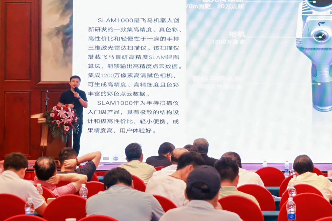 只有高精度、高密度、高精细度的产品才可以最大限度为测绘作业保驾护航。飞马机器人产品经理张西童以“高精度移动测量解决方案”为题,通过多款手持激光雷达扫描仪(SLAM)的功能介绍及真实案例分享,阐述SLAM系列精准、可靠、便捷的产品特性。为推动空天地一体化进程,飞马机器人SLAM系列产品凭借超长测程、实时建图、实时赋色、实时引入RTK位置等功能极大提升了地理信息采集的效率与精度,为室内测绘、地下空间探测等领域带来了革命性的技术突破。