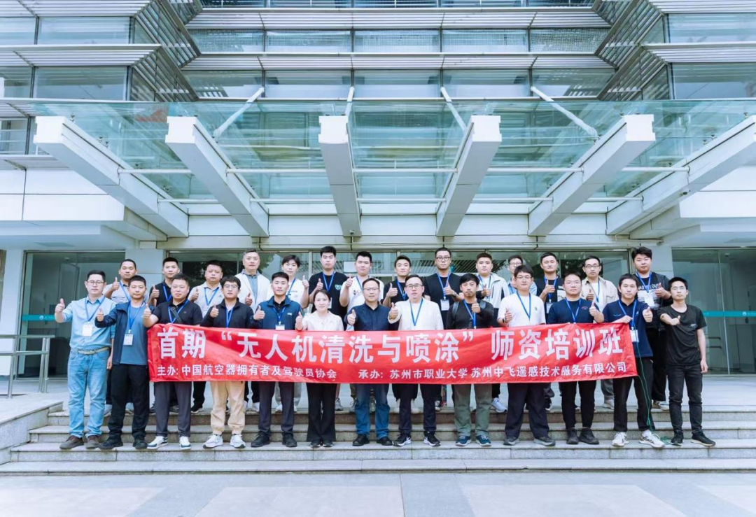 2025 年 5 月 13 日—17日,由中国航空器拥有者及驾驶员协会(中国AOPA)主办、苏州市职业大学和苏州中飞遥感技术服务有限公司承办的首期 “无人机清洗与喷涂” 师资培训班在苏州市职业大学正式开班。此次培训班旨在破解低空经济领域“场景技术迭代快” 与 “师资储备不足” 的结构性矛盾,为低空经济行业培育“低空 + 行业应用” 复合型人才,推动低空经济产业发展,来自全国20多家培训单位的学员参加了培训。