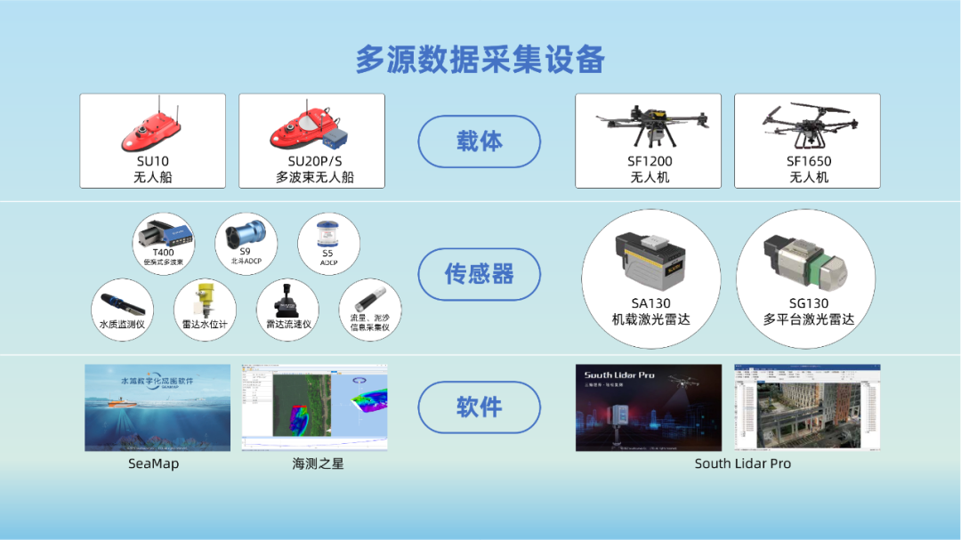面向水利行业,南方测绘深耕颇多。拥有的全自主研发地理信息数据采集装备及软件产品,全方位贴合水利、水文、水务、海洋、航道、港口等多元场景需要。为匹配市场需求,南方测绘构建并完善了项目应用和实施能力,为提供水利行业天空地水工全体系解决方案打下坚实基础。