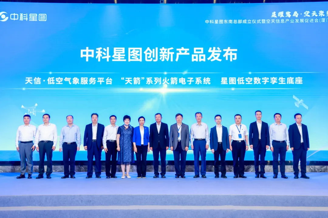 会上,中科星图东南总部正式成立并落地厦门集美软件园三期,计划将东南总部建设形成具备装备制造、科技创新和产业培育能力的总部型企业。会上,中科星图(厦门)空天科技有限公司(筹)、中科星图天辰科技有限公司、中科星图测控技术股份有限公司正式签约。中科星图发布三款创新产品,“天箭”系列火箭电子系统、天信·低空气象服务平台、星图低空数字孪生底座,赋能空天新场景。