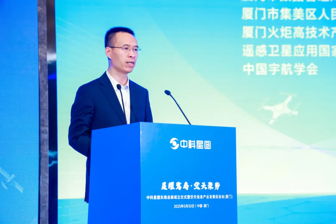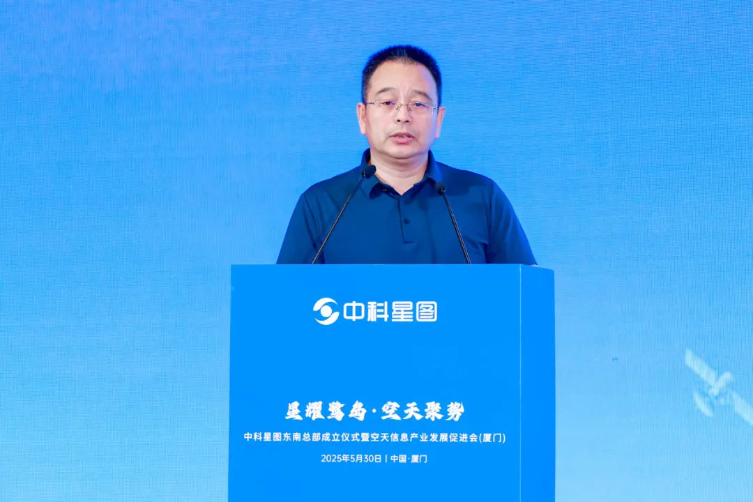 中科星图股份有限公司董事长许光銮在致辞中表示,中科星图深耕空天信息领域多年,秉持开放合作的理念、坚持走创新驱动发展之路,遵循“向天补强、向空发展、空天一体、以云为本”的理念规划,打造天基能力和空基能力,向商业航天全产业链拓展,布局低空经济全产业链,让空天信息能力赋能千行百业。此次中科星图东南总部落地厦门,中科星图将充分发挥自身优势,在“技术攻坚、生态共建、场景赋能”等方面与厦门深化合作,助推厦门空天产业发展迈向新发展高度。