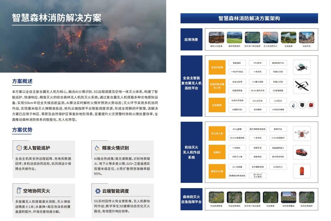 该方案融合了AI火情识别、5G远程调度及空天地一体灭火体系,构建了智能巡护、快速响应和精准灭火的综合森林无人机防灭火系统,已广泛应用于林区、草原及自然保护区等复杂地形场景,显著提升火灾预警时效和火情处置效率。