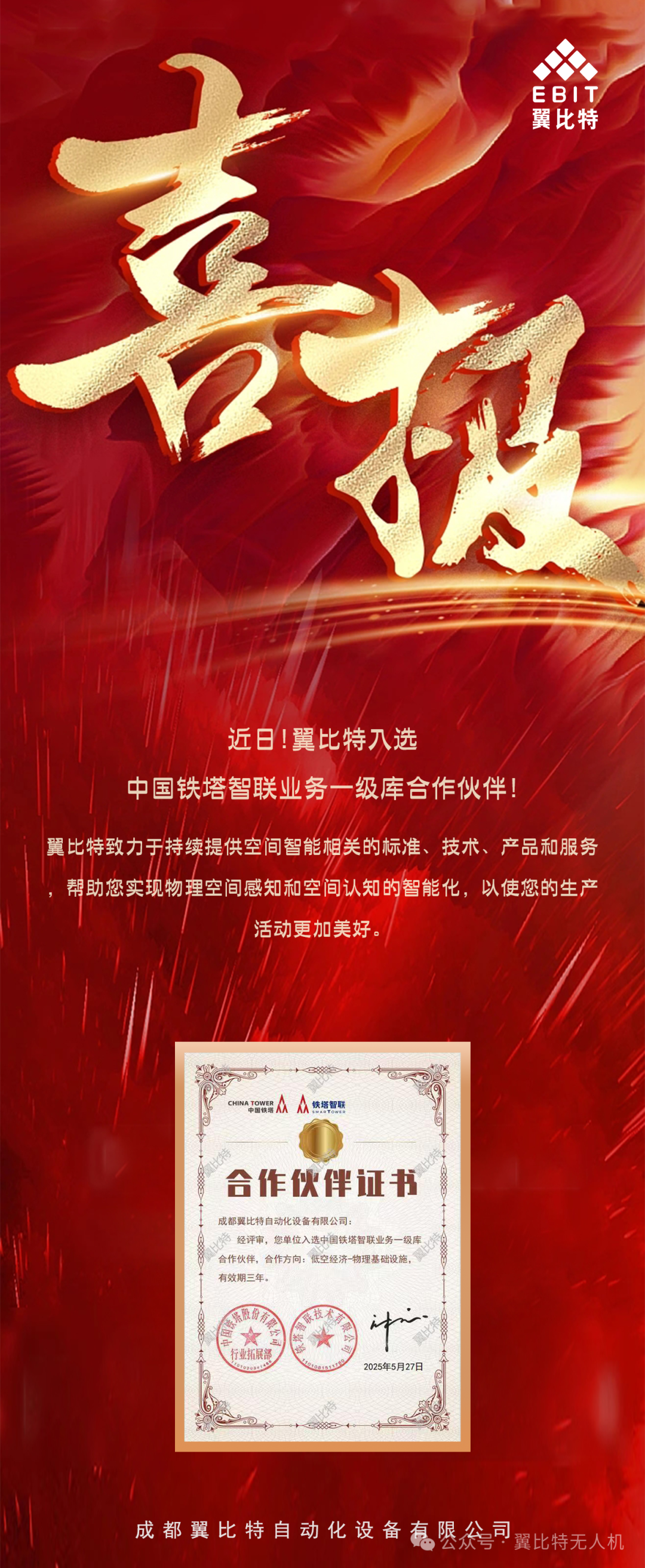 喜报!翼比特入选中国铁塔智联业务一级库合作伙伴!