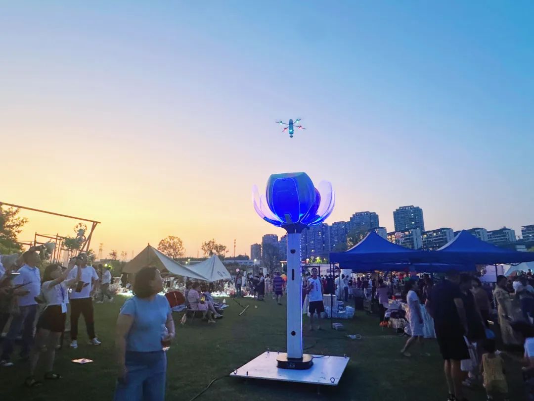 荣获“设计界奥斯卡”美国缪斯设计奖的科技创新产品——“圣·宝莲灯”全自主无人机巡检系统以其充满传统文化韵味的莲花开合设计和未来感十足的智能化无人机作业系统,吸引了众多市民驻足观看。