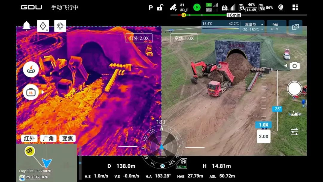 基于高清红外云台相机和AI算法,无人机可进行低空大面积搜索巡查,无论白天黑夜都能高效精准识别被困人员、积水区域,助力排查搜救工作,为救援提供低空新视角。