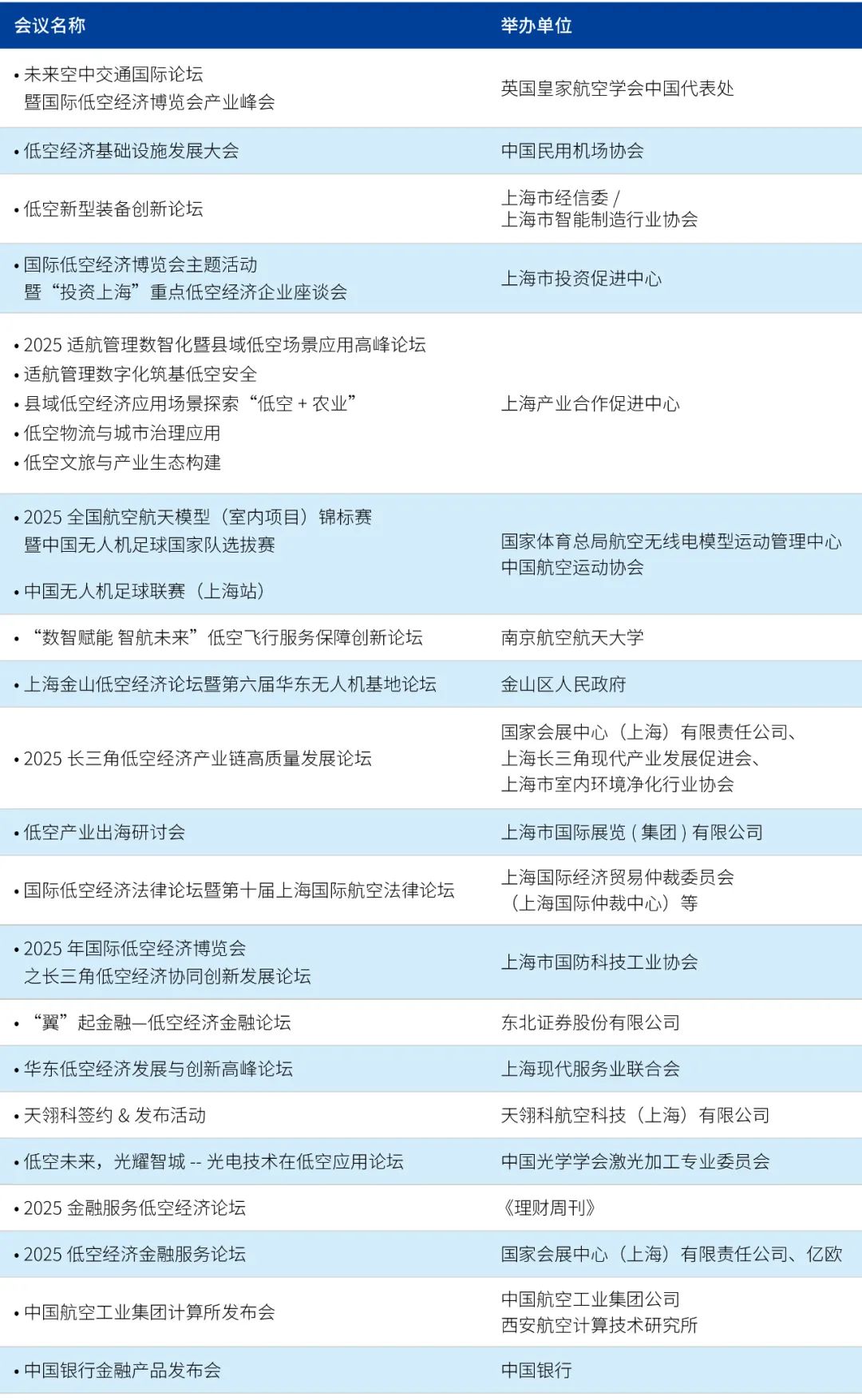 国际低空展同期论坛活动将邀请全球低空经济领域的专家、航空监管机构、企业代表参与,其中欧洲民航局、新加坡航空局将派代表参加。国际低空领域的头部企业英国Vertical Aerospace、巴西航空工业集团下属Eve Air Mobility,意大利莱奥纳多航空将参加由英国皇家航空学会中国代表处举办的“2025未来空中交通国际论坛暨国际低空经济博览会产业峰会”。