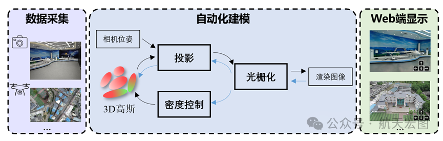 航天宏图全栈式3DGS实景三维重建系统,贯彻从多源数据采集、自动化建模到个性化Web端显示的完整流程。系统支持无人机、手持相机等多种采集方式,结合空三计算与相机位姿优化模块,实现高质量的3DGS模型构建。建模过程高度自动化,无需复杂人工调参,可高效输出轻量、高保真的三维模型。模型可部署至浏览器端,支持多视角切换、标注和图层管理等功能,交互展示平台可按需定制,灵活对接各类业务系统。