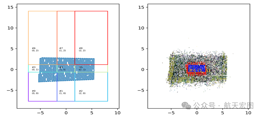(左)场景整体分块示意图,(右)单个分块区域展示
