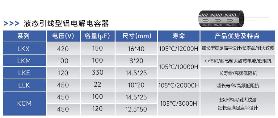 小体积:永铭液态铝电解电容器采用细长型设计(特别是KCM 12.5*50尺寸),完美契合无人机扁平化设计的需求,轻松嵌入到复杂的电源管理模块中,提升整体设计的灵活性。