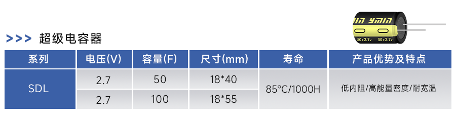 耐宽温:超级电容器可耐受宽温-70℃~85℃,极寒或高温天气下,超级电容器依然能确保电机驱动系统的高效启动和稳定运行,避免因温度变化导致性能下降。