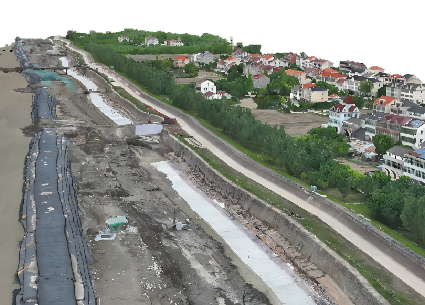 关键设施健康监测:通过厘米级定位与高清影像,实现闻堰结构体、古海塘状态、海塘身完整性及堤顶路面异常的精准识别与历史对比分析。