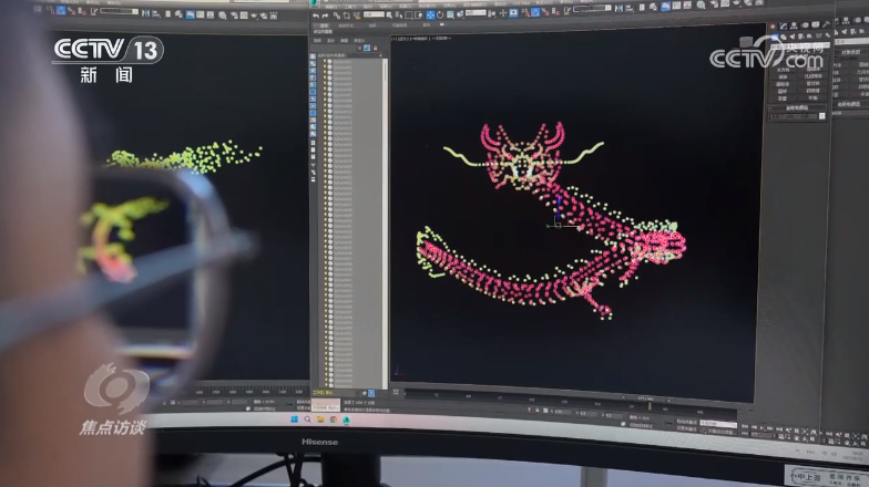 无人机群飞行规划员徐唐昊说道:“要让龙动起来,那一定首先不能让它那么生硬,你看这是我当时做的一个龙的初稿,对比终稿改了差不多有近20版。一个点一个点去调,然后调整到最完美的一个姿态。”