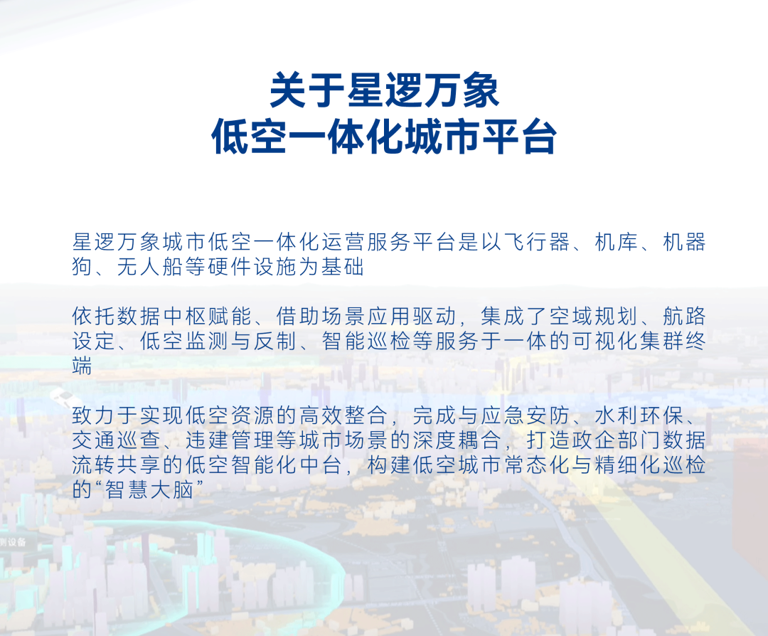 星逻智能是一家专注无人机数据采集分析服务的公司,提供自动充电、自动调度、自动采集、自动分析的完整方案。