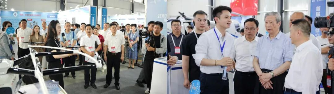 展会期间,中国工程院院士刘大响,空军原参谋长助理刘殿君少将,重庆市梁平区委副书记、区长陈孟文,副区长唐俊义等领导莅临零重力飞机工业展位调研,细致听取了公司关于产品研发进展、产业化进程及适航取证情况的汇报。