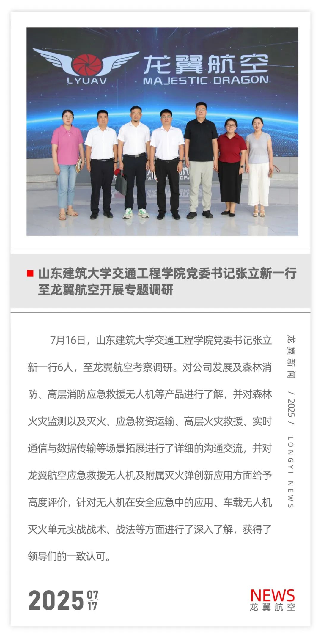 山东建筑大学交通工程学院党委书记张立新一行至龙翼航空开展专题调研