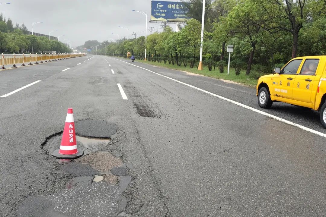 东山县交通运输局进行安全警示并安排养护人员修补