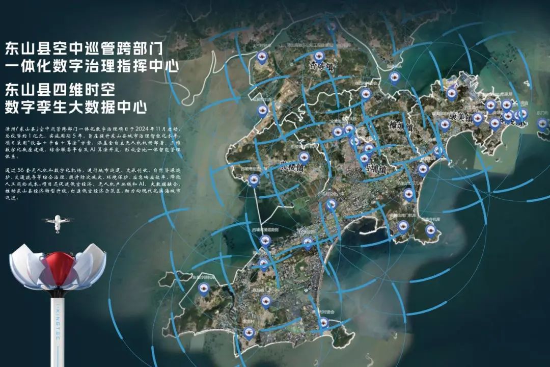 目前,项目首期36套宝莲灯全自动机场全部建设完成,36个低空网格员云小圣覆盖东山县全域,辐射环保、应急、市政、交通、自然资源、景区安防等多个领域,全天候保障全县综合治理应用。
