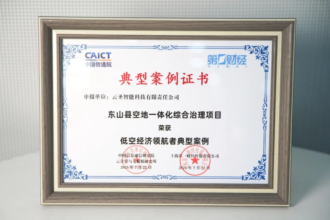 7月22日,第十二届可信云大会在北京中关村国家自主创新示范区会议中心举行。本届大会以“云智融合 可信未来”为主题,由中国通信标准化协会主办,中国信息通信研究院承办。在大会主论坛举行的2025“低空经济领航者”典型案例发布仪式上,云圣智能申报的“东山县空地一体化城市综合治理项目”荣膺典型案例。