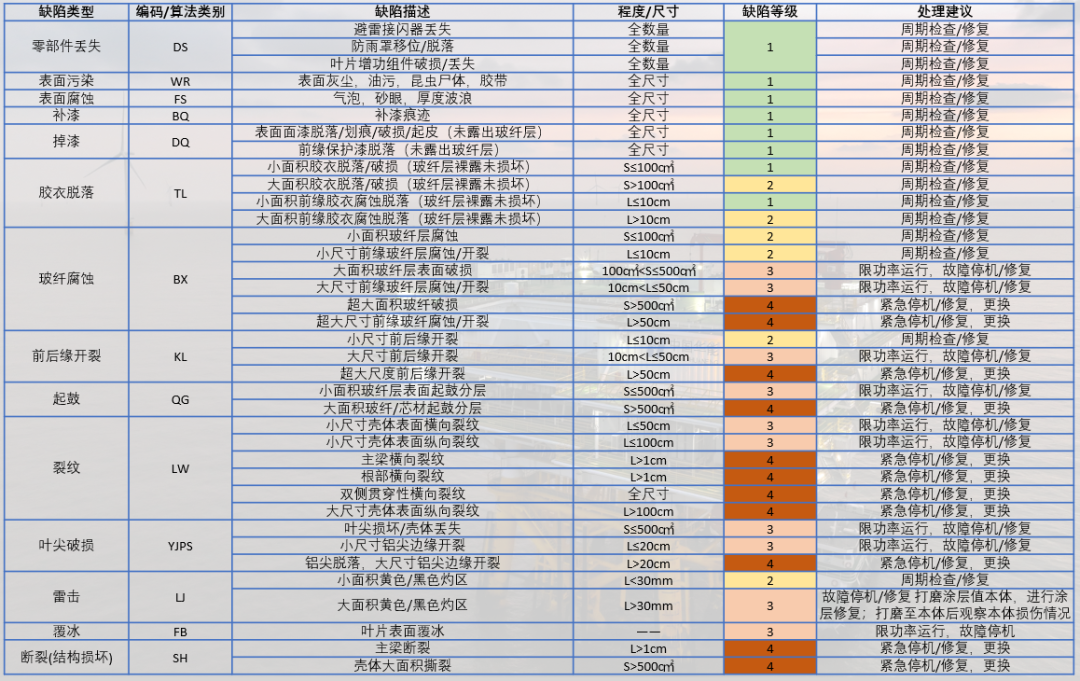 AI自动分析缺陷类型(如裂纹、掉漆、雷击等),准确率超90%。