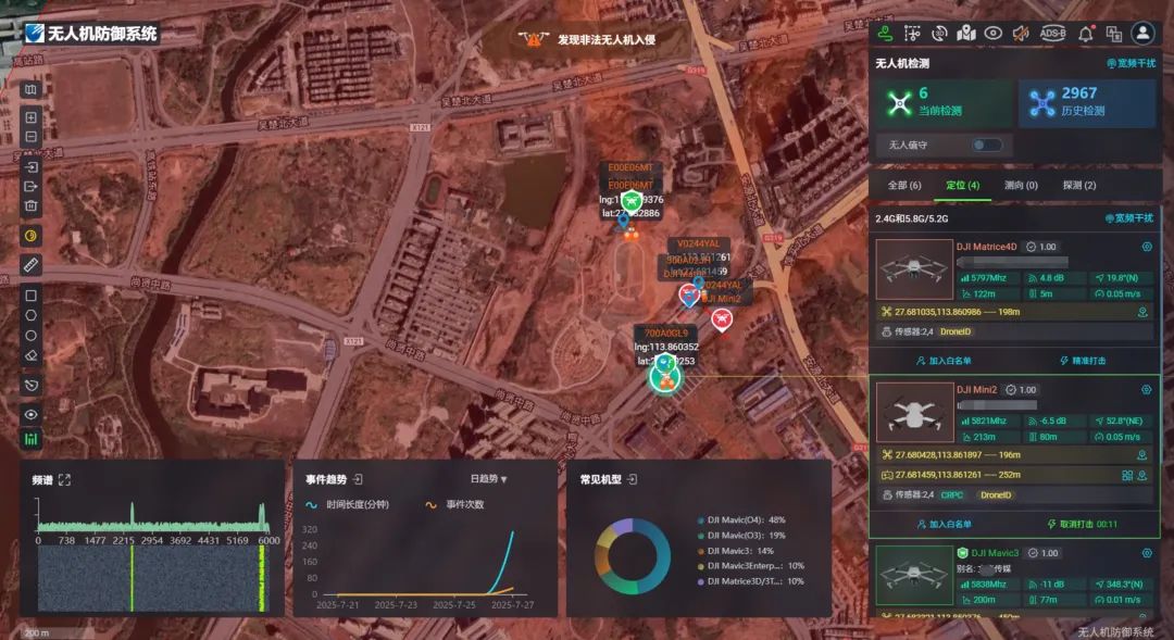 面对赛事期间复杂的低空环境与潜在威胁,历正科技依托旗下领先的反无人机体系,精准部署了潜盾WD-I、哨兵300、前哨P-D、利剑P1等核心反无设备,构建出全方位、多层次的低空防护体系。