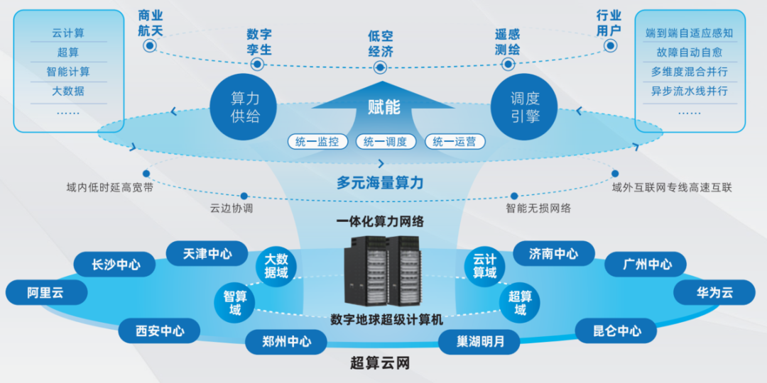 星图超算云网以数字地球超级计算机为核心,打造跨域协同的智能算力调度平台,实现国家级算力资源的高效互联与统一运营。