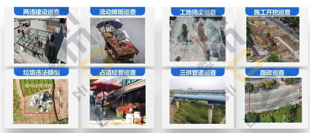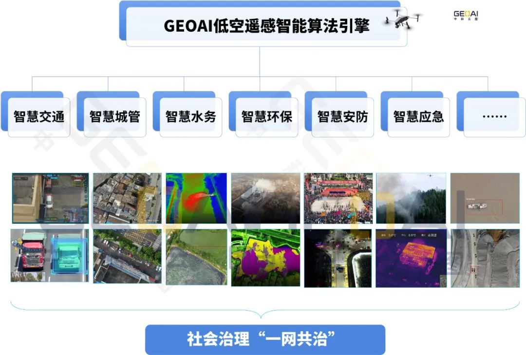 中科云图GEOAI低空遥感智能算法引擎基于全新自研架构,算法深度适配不同行业场景。依托低空无人机遥感网的广域覆盖替代大量人力巡查,结合AI智能识别分析,一次飞行采集的海量信息,可同时精准识别涉及城管、水务、环保、应急、住建等多个领域的数十类城市问题,在丰富的城市治理细分场景中转化为看得见、摸得着的“集约高效”红利。