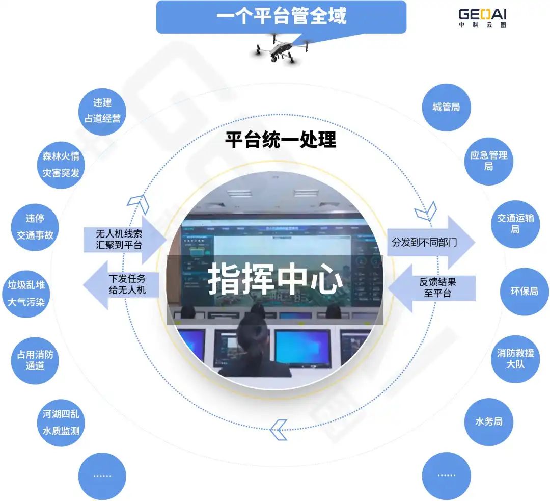 例如,识别出的新增违建信息可自动推送至城管执法平台,发现的河道水质异常实时触发水务部门预警,监测到的异常热源(如潜在火点)同步联动应急指挥中心。这种基于统一平台、统一数据、统一流程的运作模式,有效打通了部门壁垒,变“九龙治水”为“一网统管”,实现城市高效治理和集约化服务。