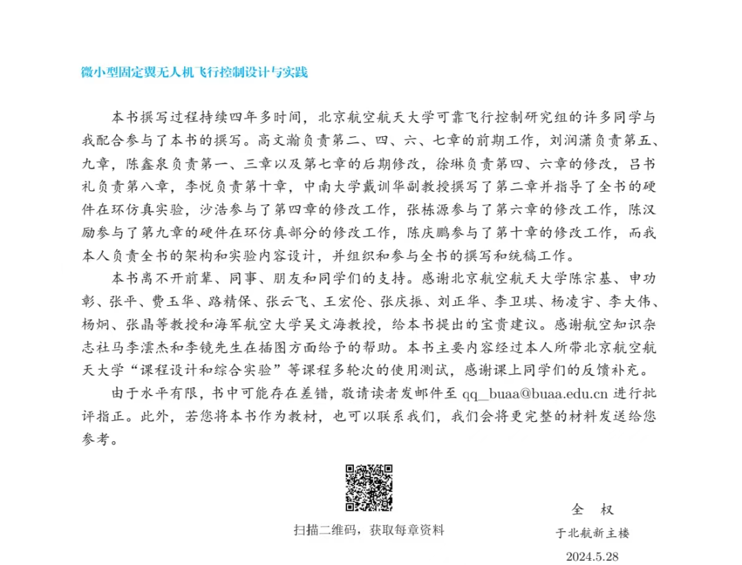 北京航空航天大学全权教授团队倾力打造的《微小型固定翼无人机飞行控制设计与实践》正式出版!本书以培养“无人机全栈工程师”为目标,涵盖从基础理论到前沿技术的完整知识体系,适合零基础读者快速上手,掌握无人机开发核心技能。