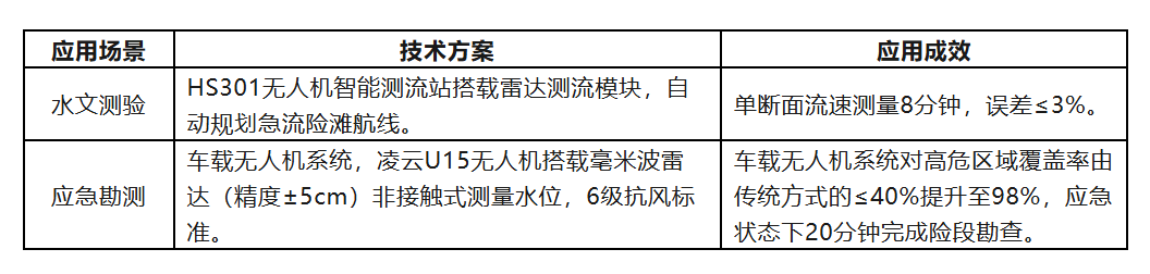 中国国际科技促进会与长江水利委员会水文局等单位发布的《无人机雷达测流系统技术规范》填补了无人机水文监测领域的技术空白,明确了无人机测流系统的组成、性能指标和测验方法。中国水利企业协会发布的《河湖水库无人机系统应用技术导则》则对河湖管理中的"三级巡查"规定了不同的飞行精度和数据处理深度。