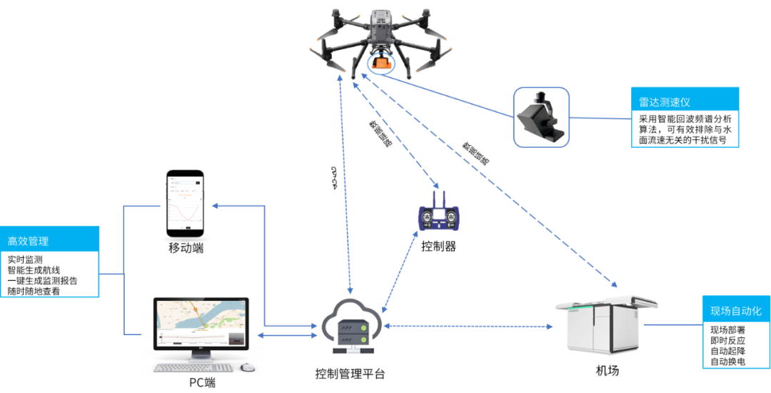 当前无人机技术正推动水文监测向实时化、精准化、无人化转型,通过无人机搭载高分辨率相机、量测相机、雷达流速仪、水位传感器等设备,基于多普勒效应非接触式测量水体表面流速,结合AI算法和断面数据计算水文参数,实现水文测验智能化,解决传统水文监测中安全风险高、效率低、地形受限等问题。