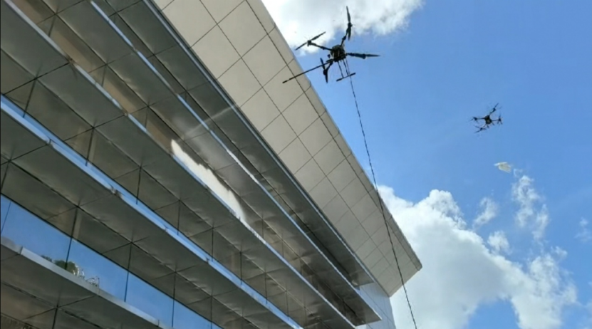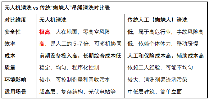 无人机清洗vs传统“蜘蛛人”吊绳作业