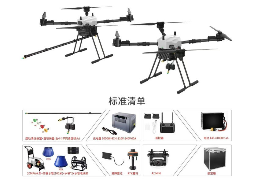 1、前期勘察与规划: 使用无人机对清洗面进行航拍测绘,生成高精度3D模型,规划最优清洗路径和航线。